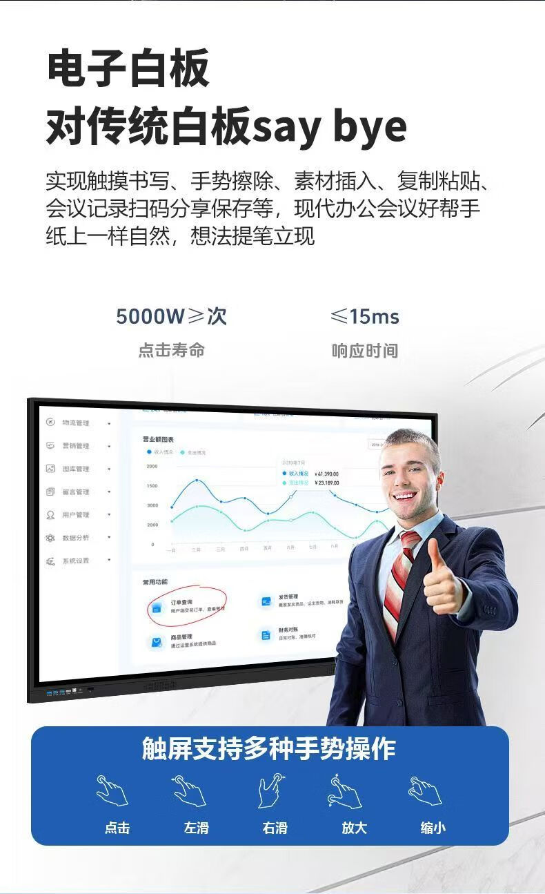 有了这台机器太方便了,不仅能当白板用,还能打开ppt讲解批注,上网下载资料也很快,给我们带来了很大的便利