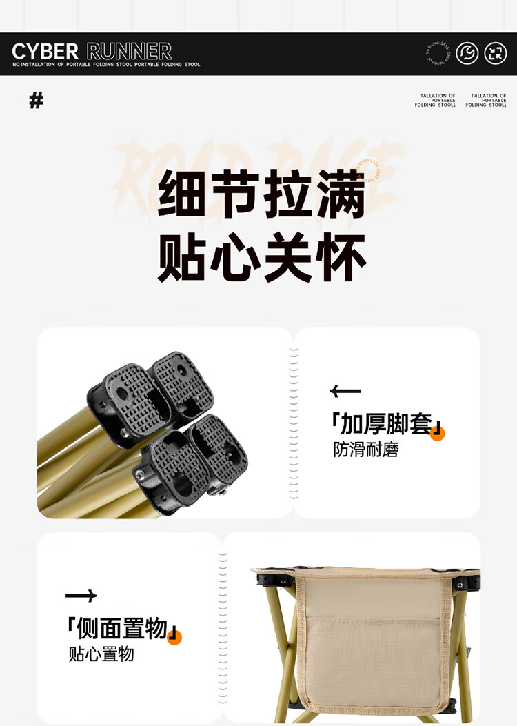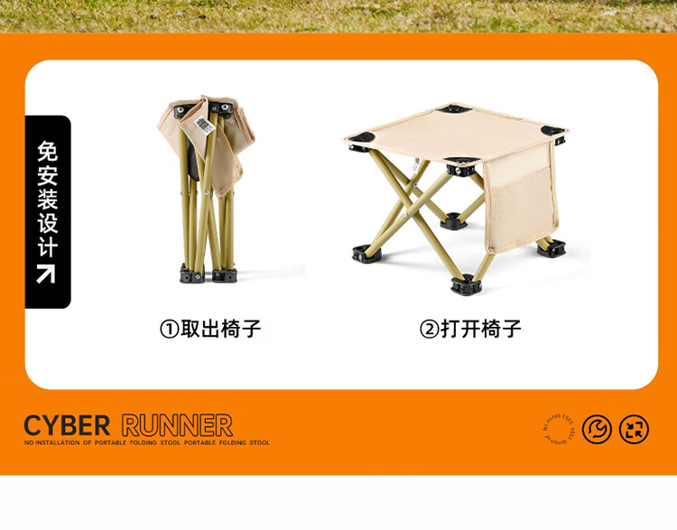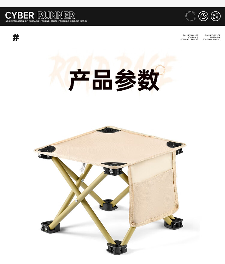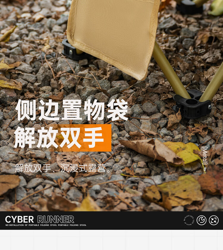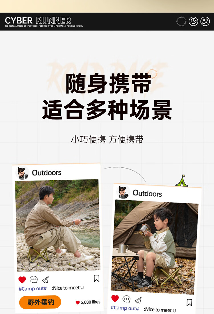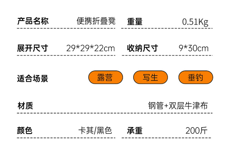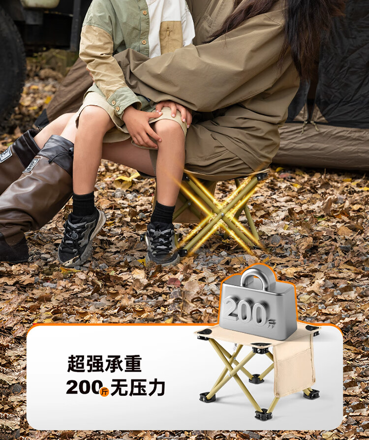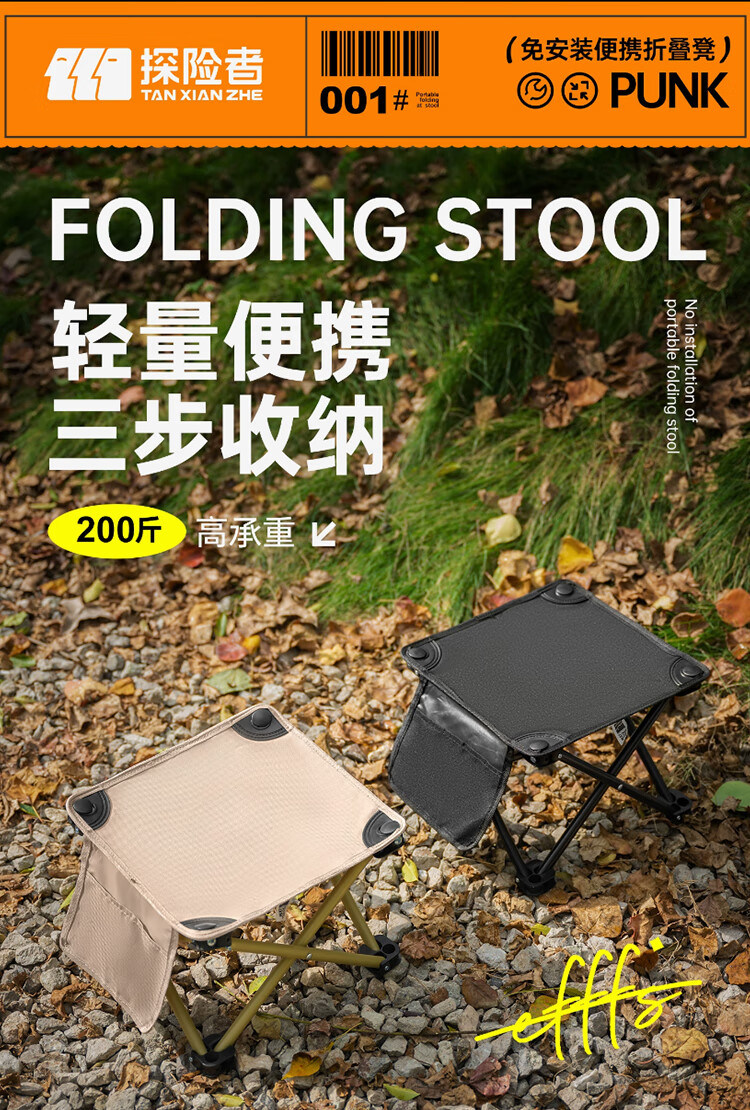探险者(TAN XIAN ZHE)户外折叠椅子便携垂钓野餐椅露营写生沙滩椅马扎凳火车高铁神器 【承重200斤】卡其带侧兜-收纳袋