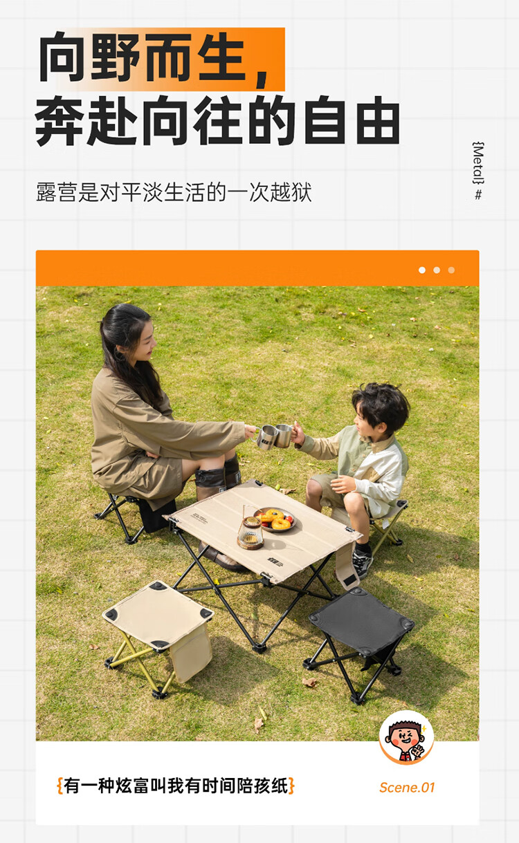 Guide Series户外铝合金折叠桌露营桌便携升降沙滩烧烤桌加宽桌自驾游车载桌 新 加宽金属 木纹黑色