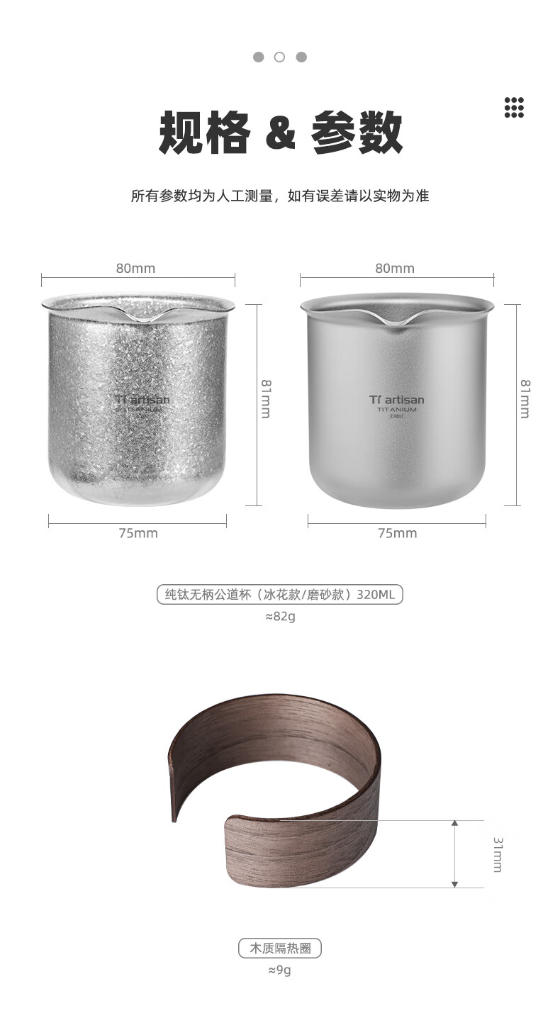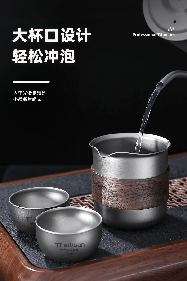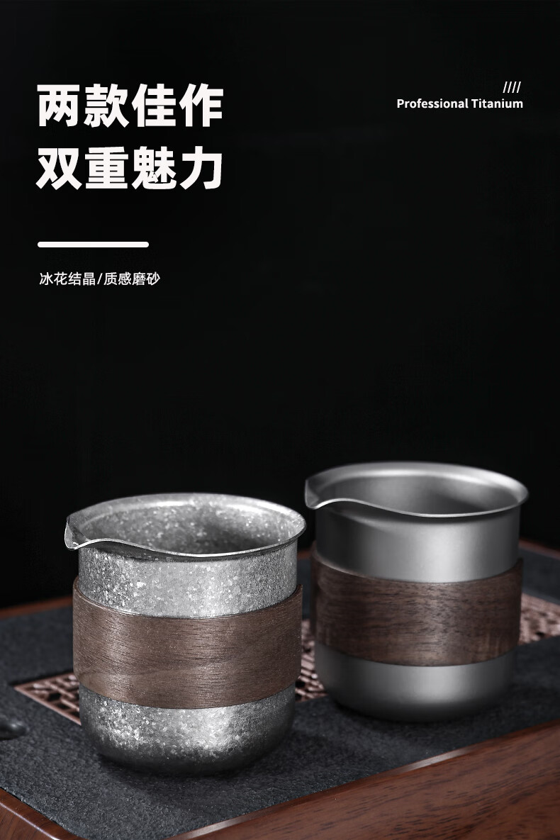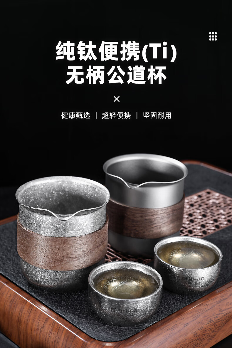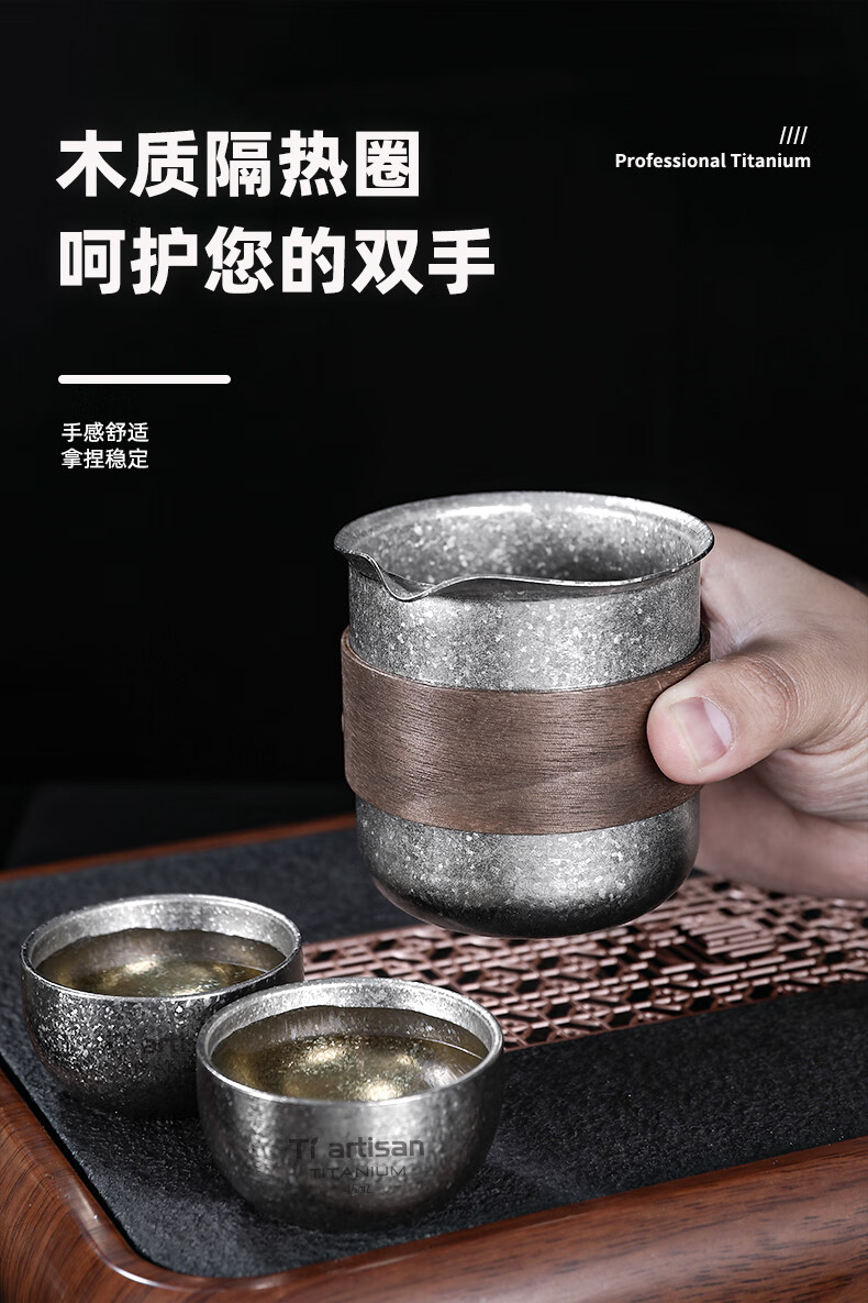 Ti artisan钛工匠户外纯钛公道杯家用隔热分茶器功夫茶具配件纯钛茶海钛茶具 公道杯+2杯【冰花款】送防烫圈