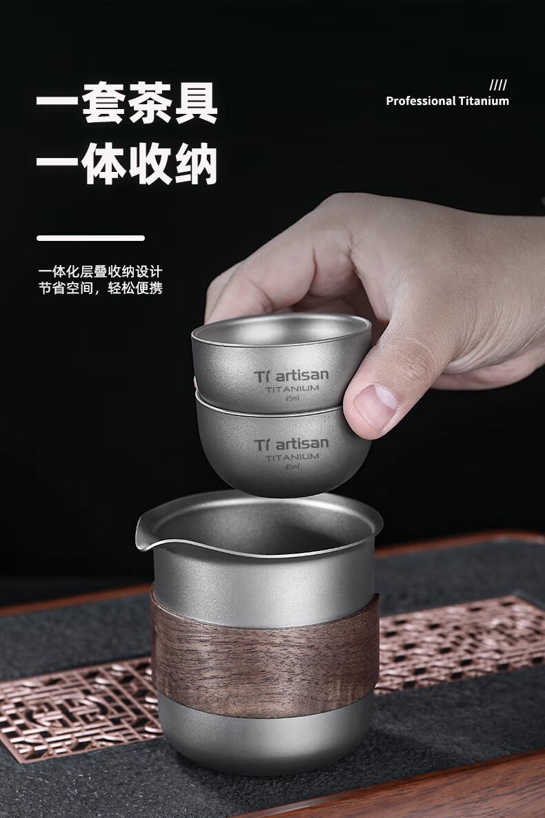 Ti artisan钛工匠户外纯钛分茶器金属公道杯功夫茶具茶滤茶漏便携单人泡茶杯 一体茶漏+钛支架