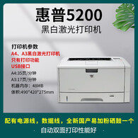 HP5200打印机a4a3学生作业试卷CAD图纸家用办公黑白激光打印复印机 5200(A3 A4无线+远程)九成新 标配