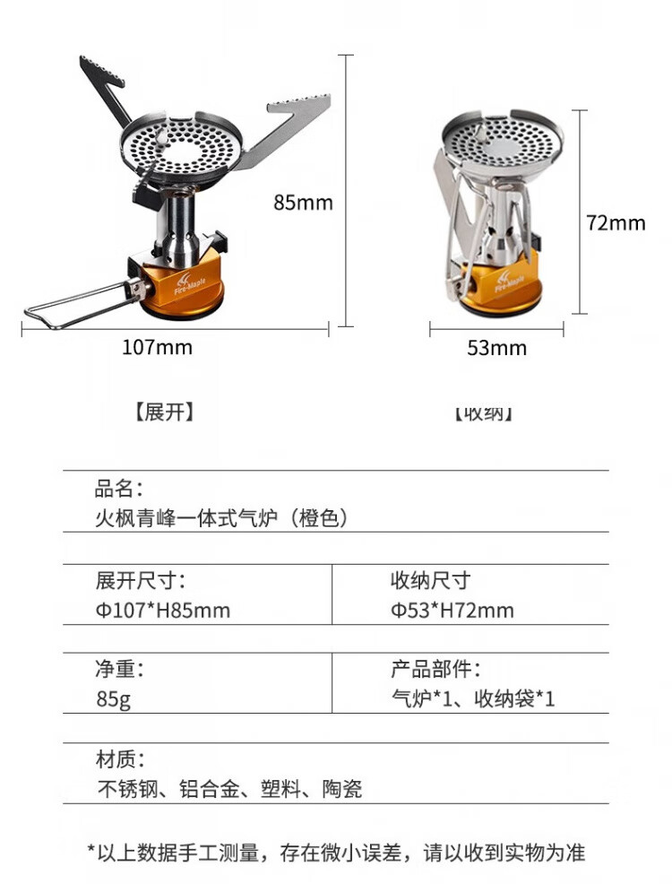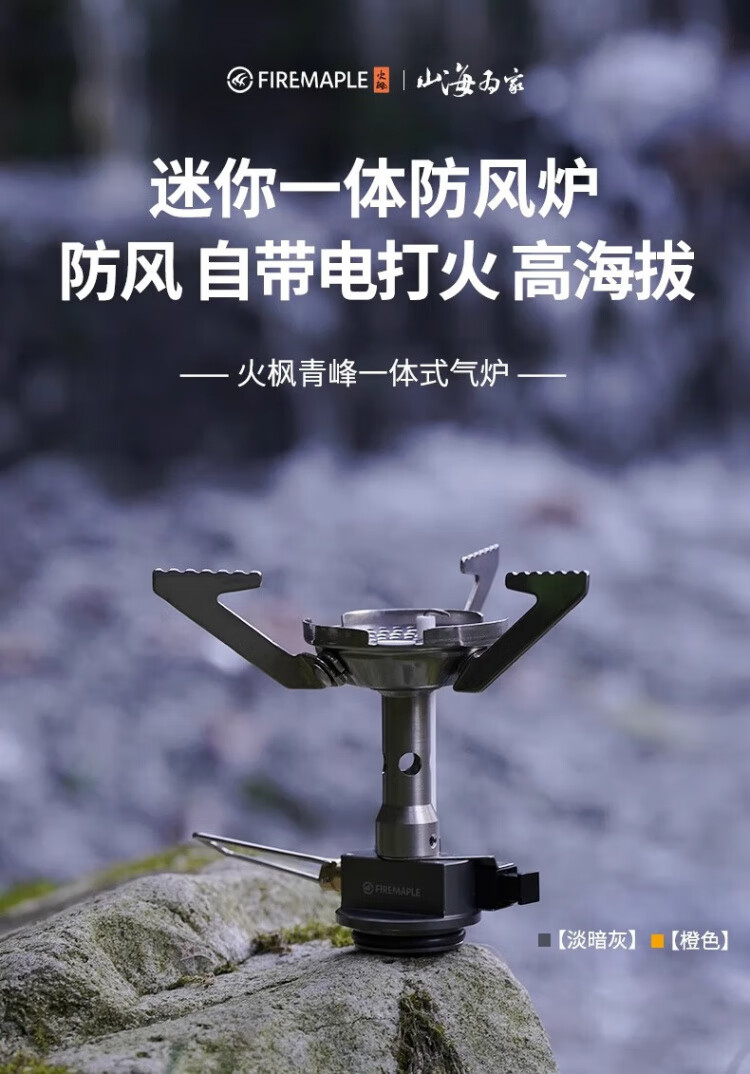 火枫(FIRE-MAPLE)青峰1一体式户外炉头装备便携迷你野外炉具野餐野营燃气轻量气炉 青峰/淡暗灰