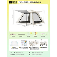 探险者(TAN XIAN ZHE)帐篷户外露营防雨过夜3人-4人速开便捷天幕二合一黑胶防晒帐篷 【3-5人云雾白】帐篷+桌椅+推车