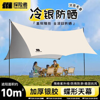 探险者(TAN XIAN ZHE)天幕帐篷露营天幕户外8-10人露营装备全套防晒蝶形防雨防风遮阳棚 10㎡霜奶白银胶天幕【2-8人】