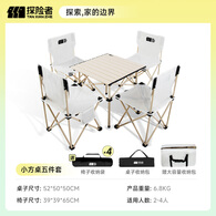 探险者露营折叠桌椅全套装备七件套野餐桌折叠椅便携椅桌椅套装一桌四椅 【50CM】米白一桌四椅五件套