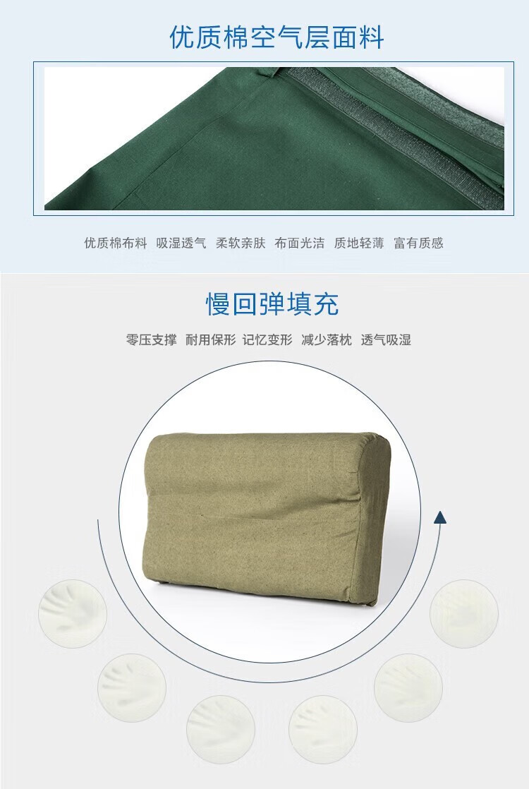 际华融通军迷内务枕头军绿色枕头夏季枕头宿舍定型枕硬质棉枕头套枕套 浅绿色枕头