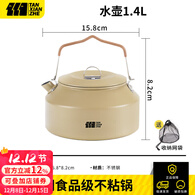 探险者户外锅具户外烧水壶锅露营野营煮水茶具用品野外装备便携式家用 米黄1.4L水壶(食品级材质)