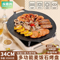 探路鸽野营炊具烤盘烧烤盘烤肉盘韩式烤肉煎烤盘卡式炉家用麦饭石烤肉锅 34cm加厚烤盘【榉木防烫把手】】