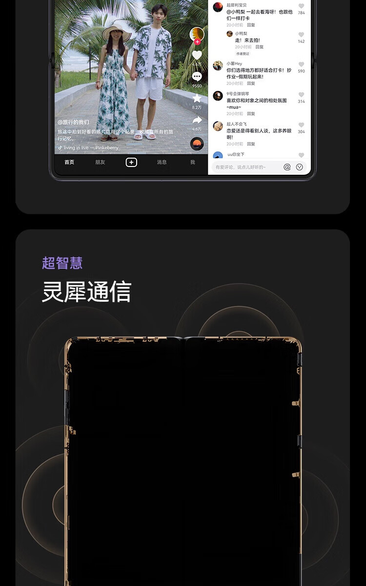 手感非常好,颜值也很高,折叠双屏用起来真的很爽,音质清晰有3D环绕音的感觉,支持华为,支持国产
