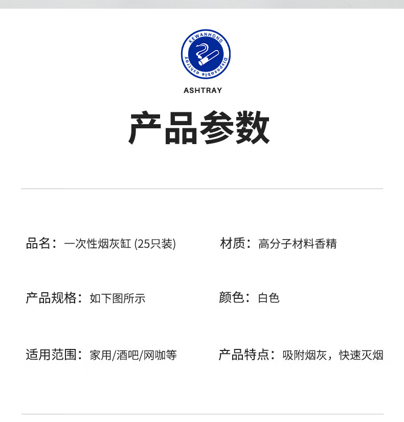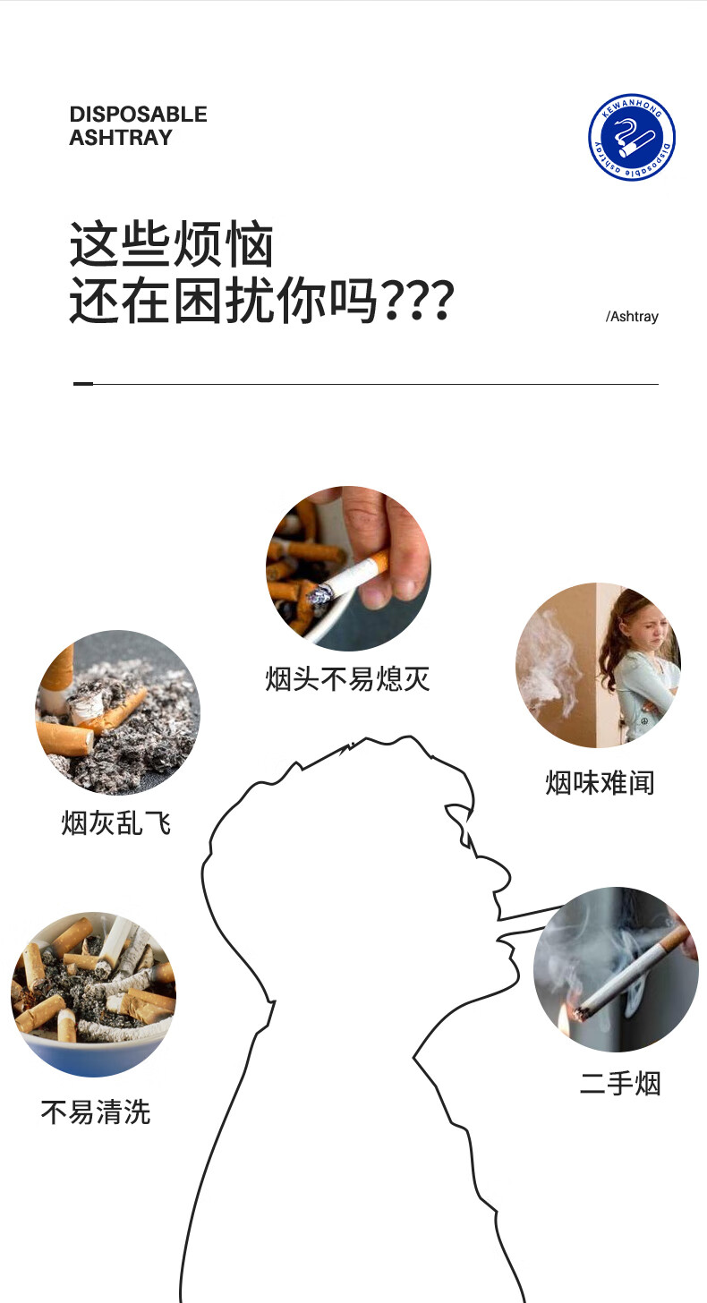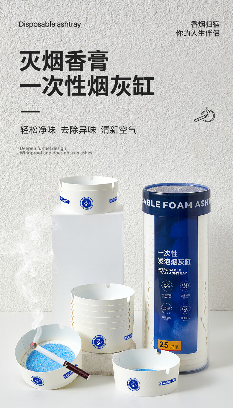 这款户外用品真的很实用,携带方便,用完即扔,省去了清洗的麻烦。办公室用也很合适,烟灰不会乱飞,保持环境整洁。材质厚实,没有异味,性价比高。
