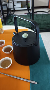 小小的铁壶,拿在手中沉甸甸,里面有像陶瓷一样可防锈,外面就要注意水,怕生锈,铁来的。适合1到2人,这样常煮水。喝新鲜的水。
