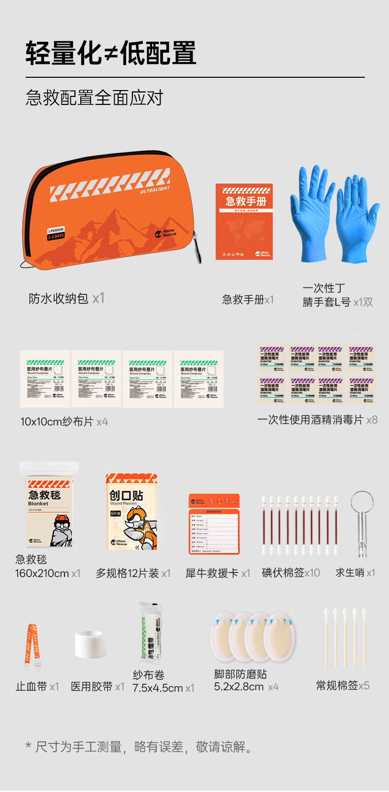 RHINO RESCUE犀牛救援萤火徒步包/登山急救/家用防护/车载应急/生存装备/旅行 户外徒步包【53件套】
