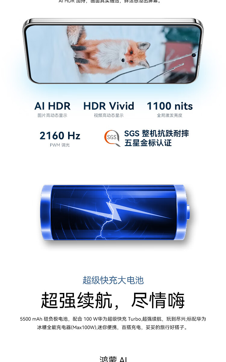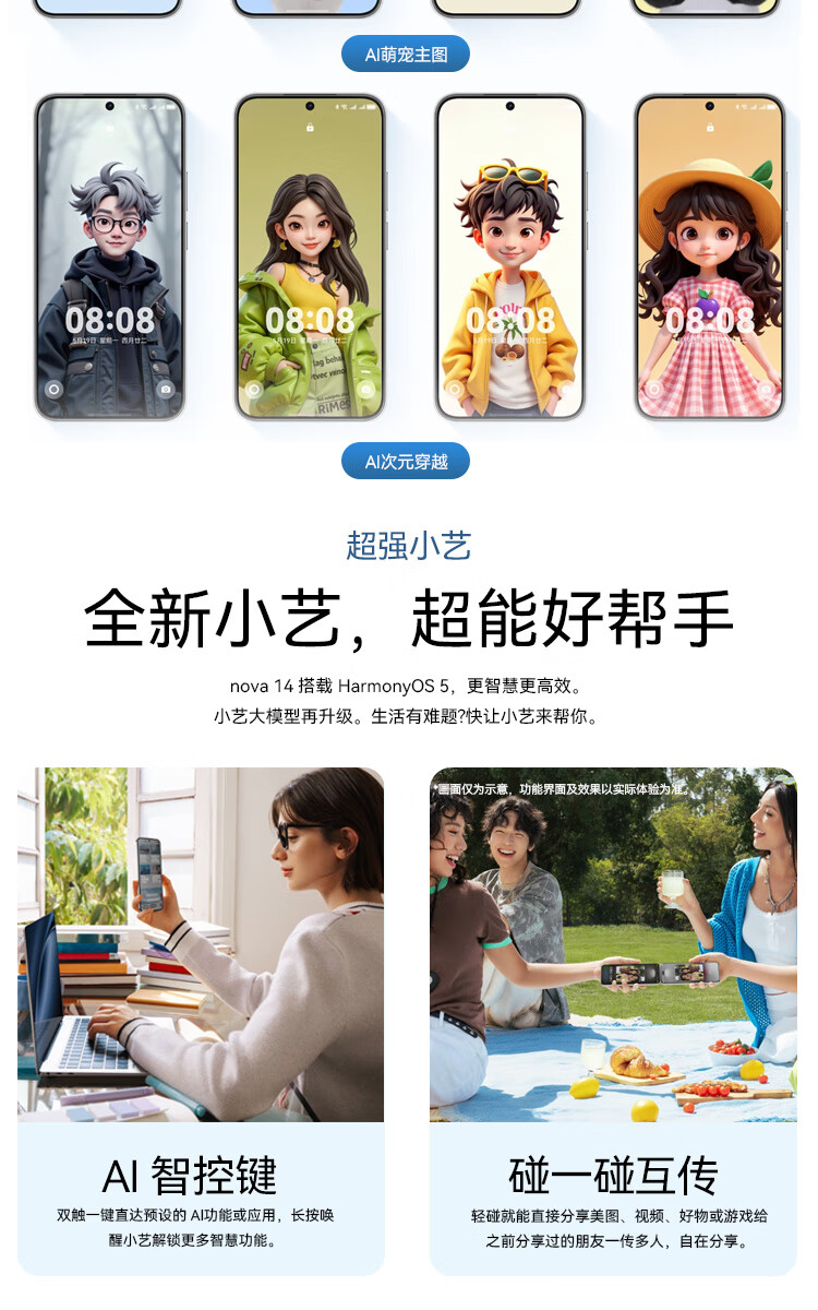 华为nova14 【国家补贴】支持鸿蒙6 现货直发 后置多焦段质感人像 鸿蒙AI 100W超级快充 鸿蒙智能YX55 凝霜白 12GB+256GB全网通版 官方标配