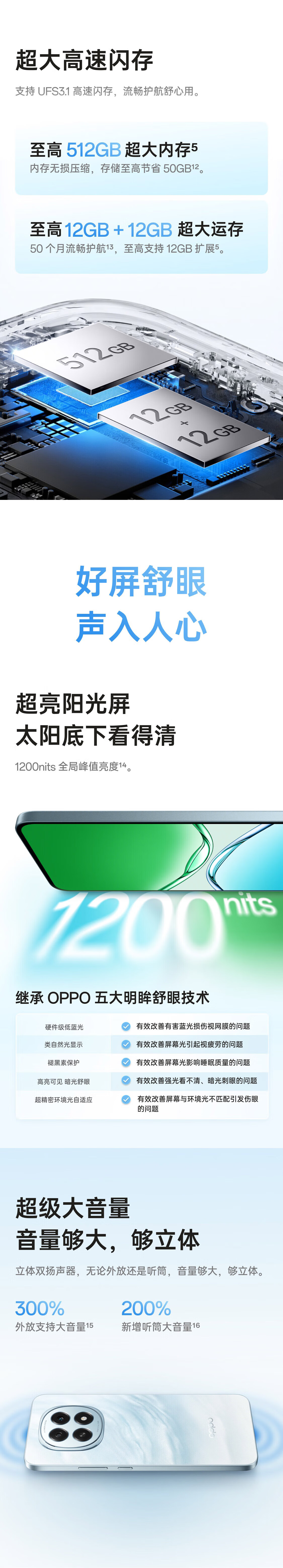 OPPO Reno15 16GB+512GB 星光蝴蝶结 12期分期可选 5G手机新品 K13x 超流畅ColorOS 15 IP69 防尘防水 【曜黑】8GB+128GB 标配版