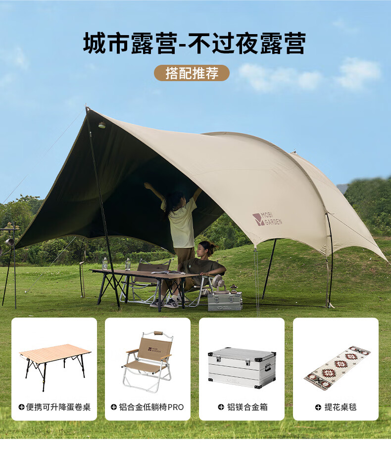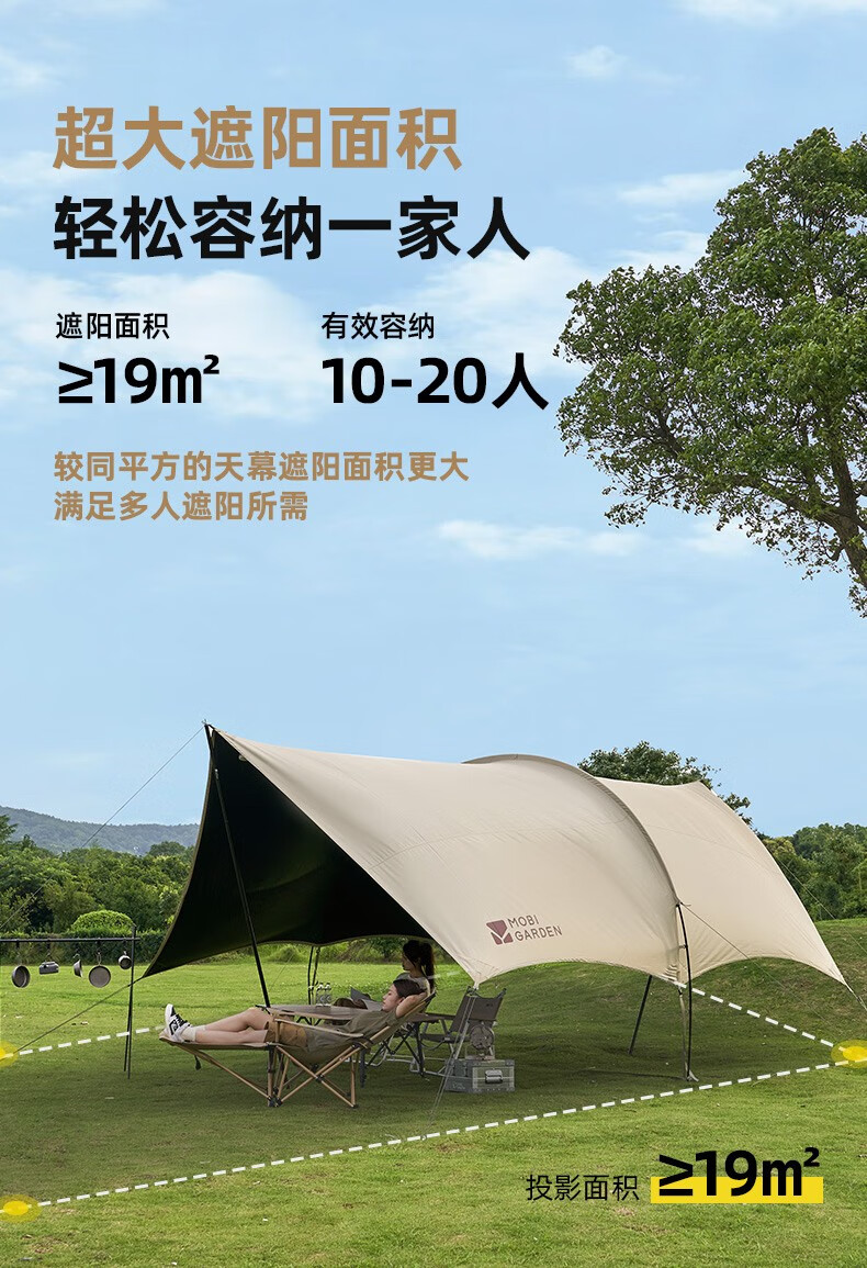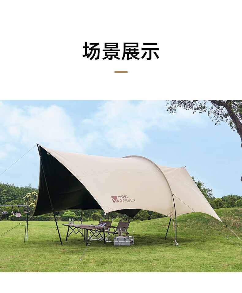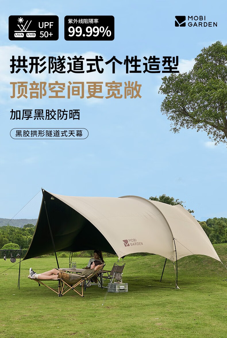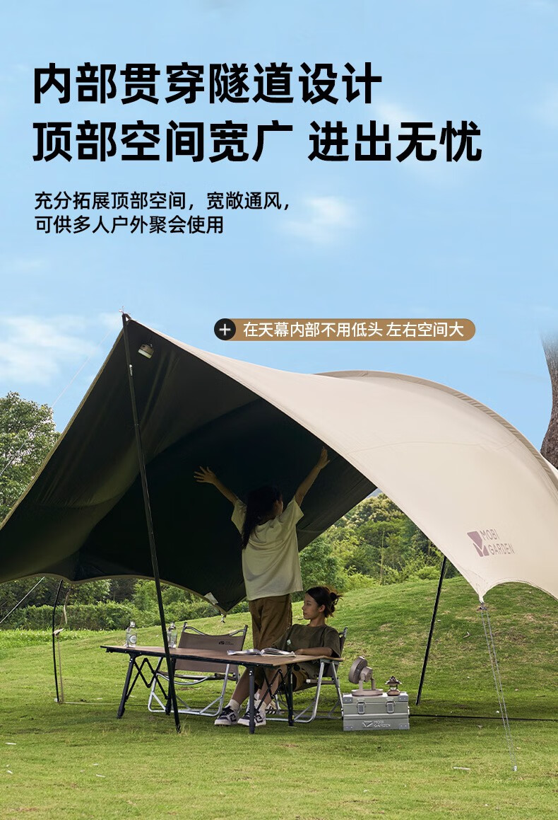 牧高笛(MOBIGARDEN)观庭250天幕 户外露营防雨防晒大空间隧道式牛津布黑胶天幕 和风沙
