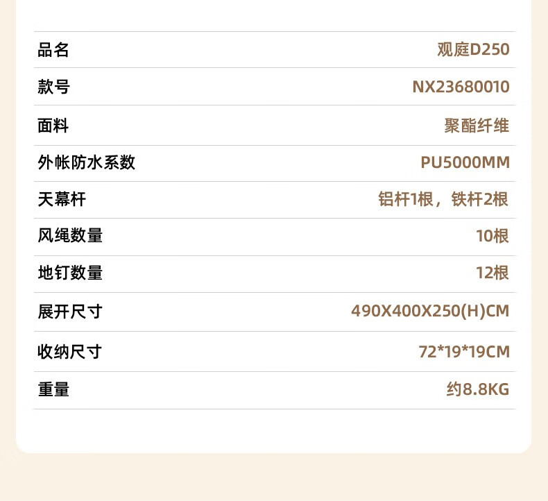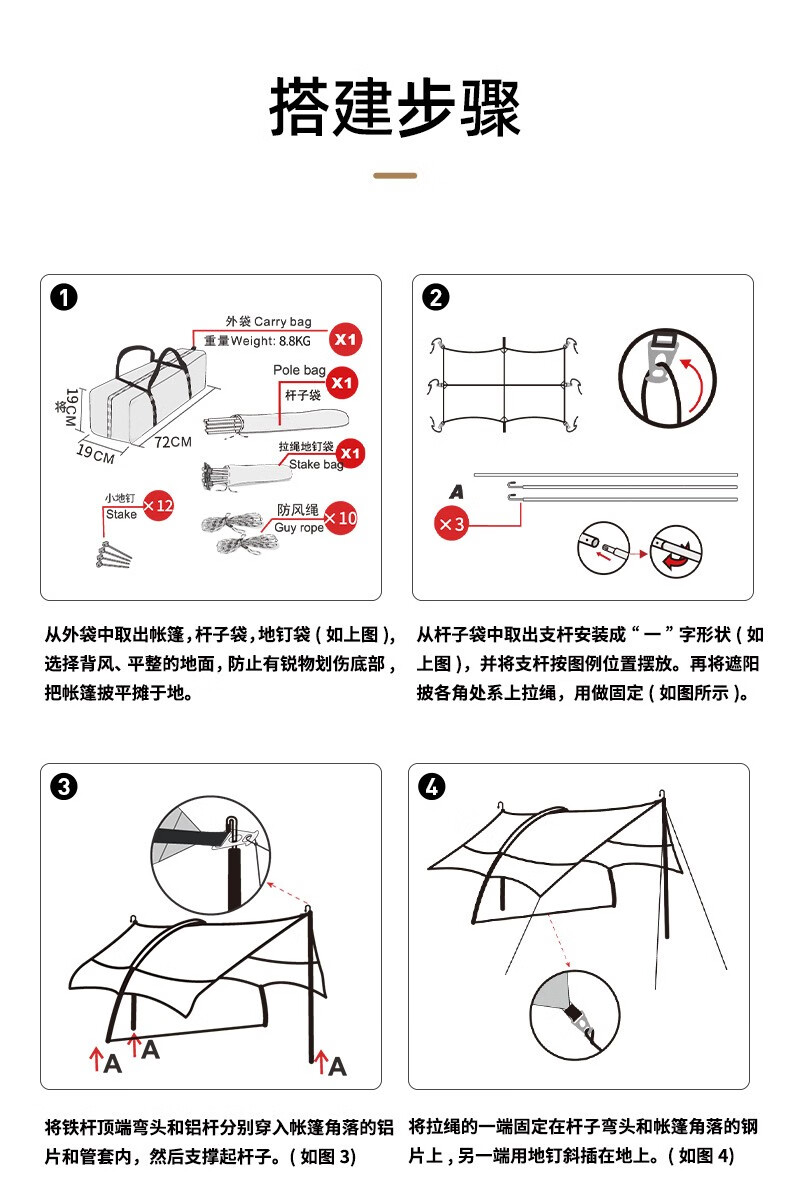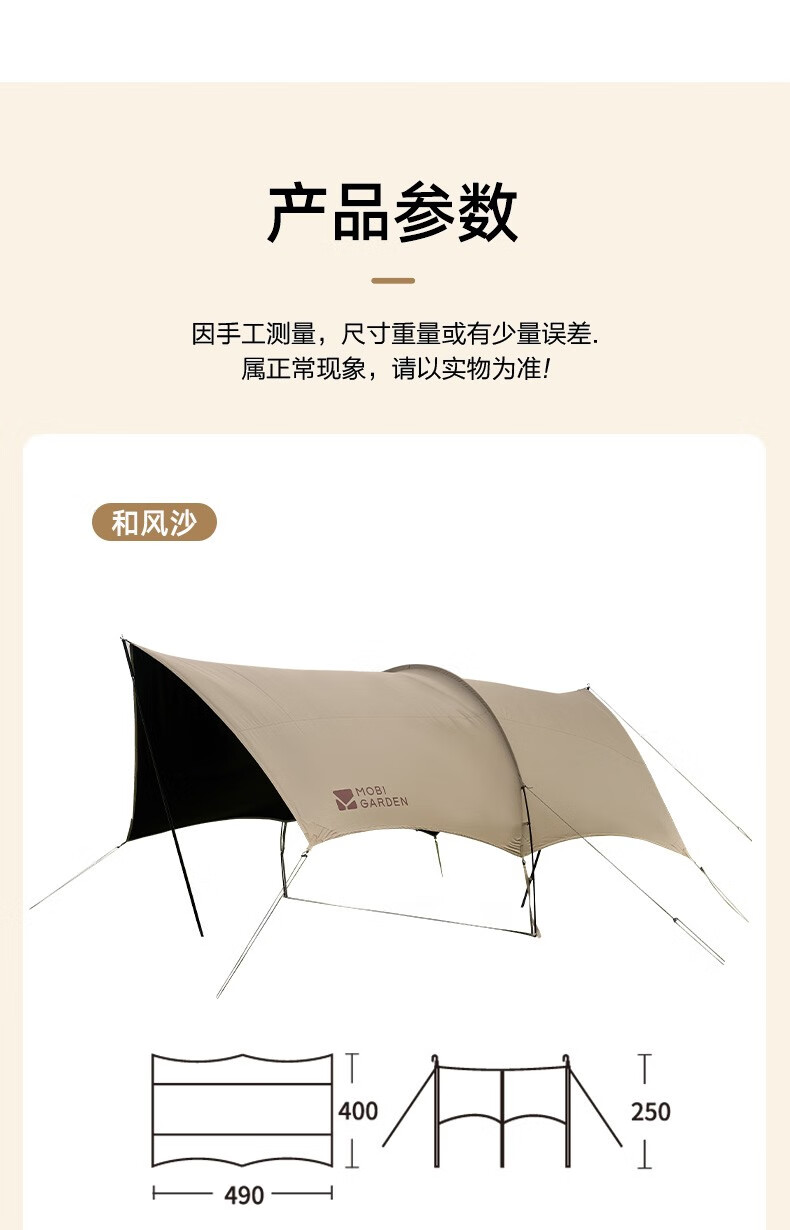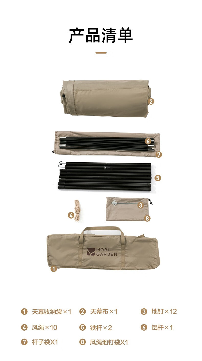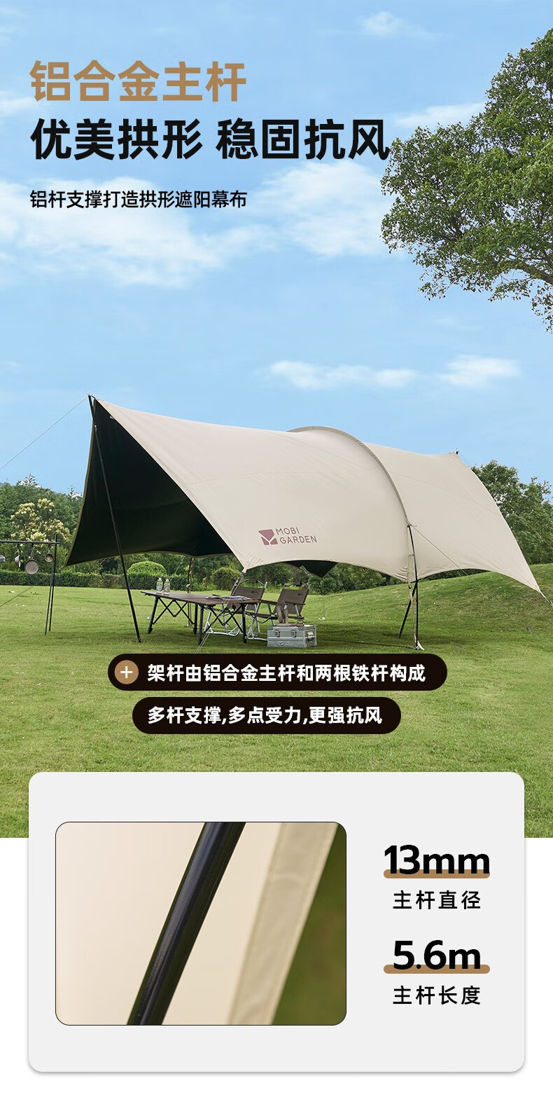 牧高笛(MOBIGARDEN)观庭250天幕 户外露营防雨防晒大空间隧道式牛津布黑胶天幕 和风沙