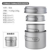 Ti artisan钛工匠户外钛锅纯钛汤锅露营炊具超轻便携式汤锅煎锅折叠套锅锅具 1100ml+1600ml有阶套锅