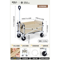 原始人露营推车户外营地拖车旅行可折叠手推野餐野营手拉车遛娃小拉车 160L 【卡其】升级加厚后开款