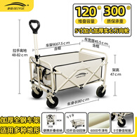 原始人露营推车营地拖车户外折叠旅行手推野餐小推车野营遛娃快递手拉车 150L 加厚款卡其【静音万向轮】