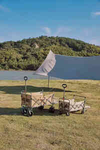 露营车超实用!折叠轻便不占地方,展开容量大,装露营装备超能装。轮子顺滑好推,路面不平也稳。颜值在线,露营,搬家,拿快递,带它超省心,真心推荐!
