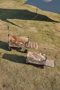 疆屿户外露营车折叠小推车旅行营地野营野餐摆摊儿童可躺野餐聚拢车 卡其【聚拢MAX款】+124蛋卷桌面