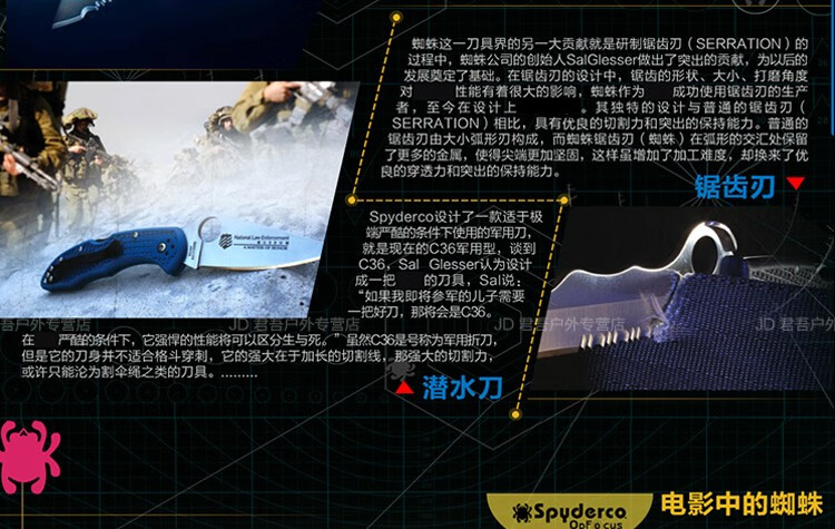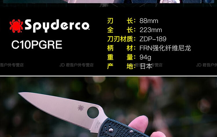 SPYDERCO蜘蛛C36GPDBL户外露营装备便携拆快递野营工具折叠刀 C36GPCMOBK深灰色 60°以下 118mm 8.4cm