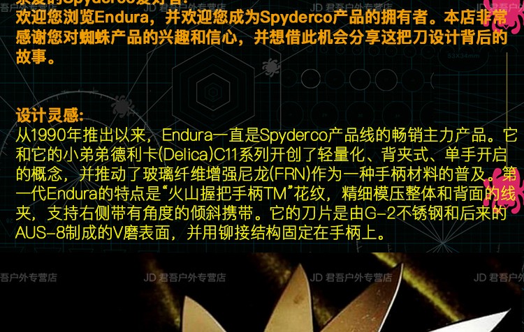 SPYDERCO美国蜘蛛 C10 Endura4 巅峰战士粉末钢户外刀露营 C10P