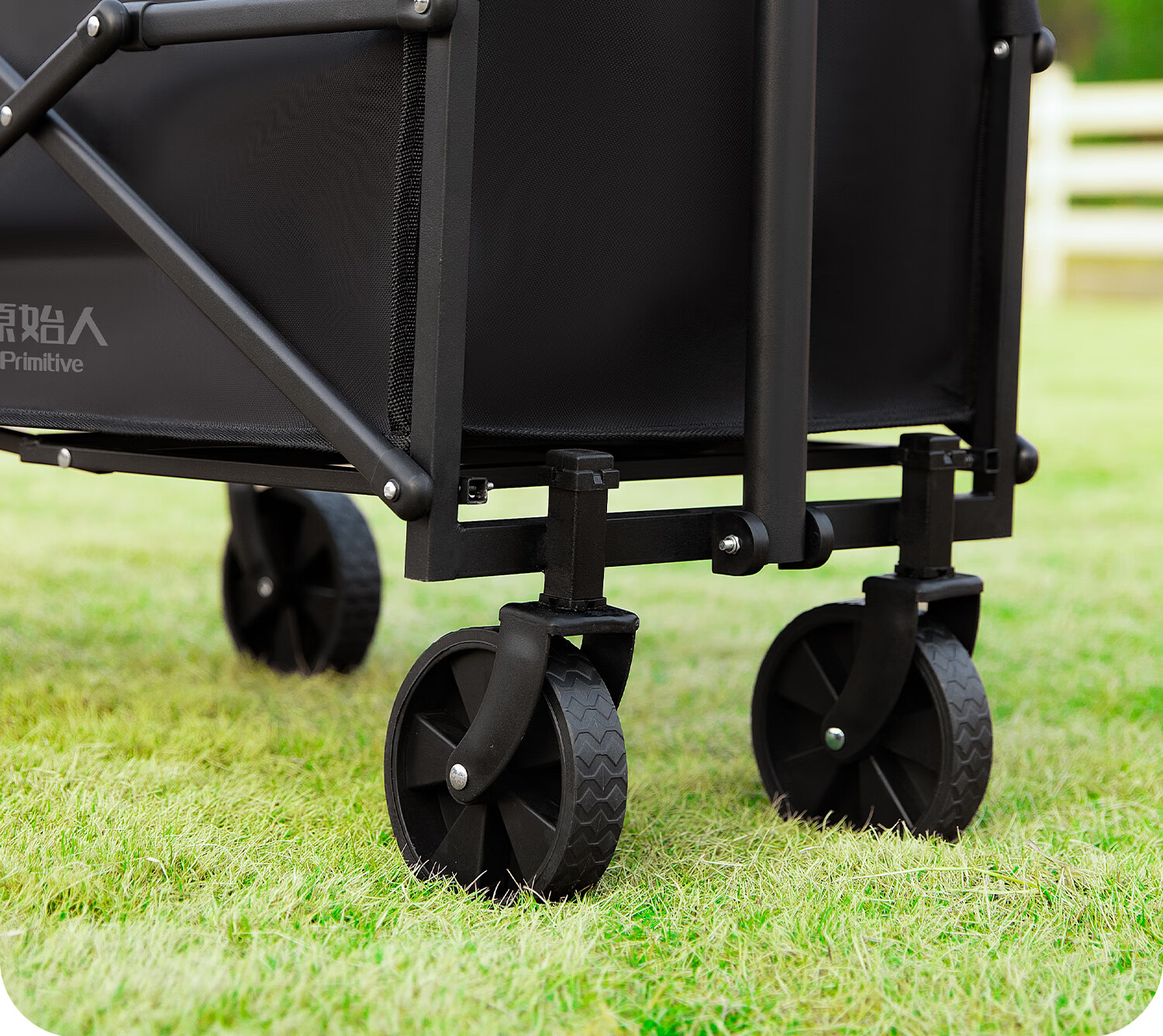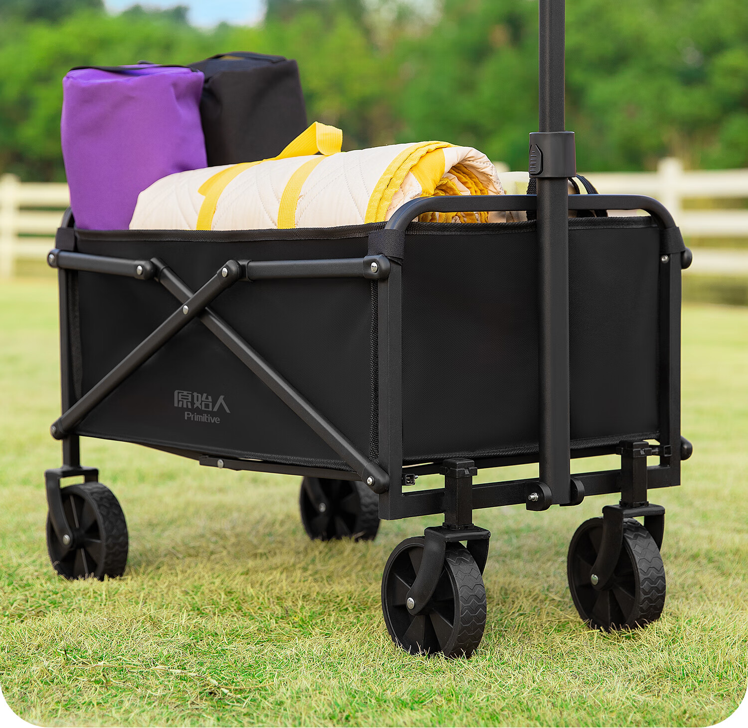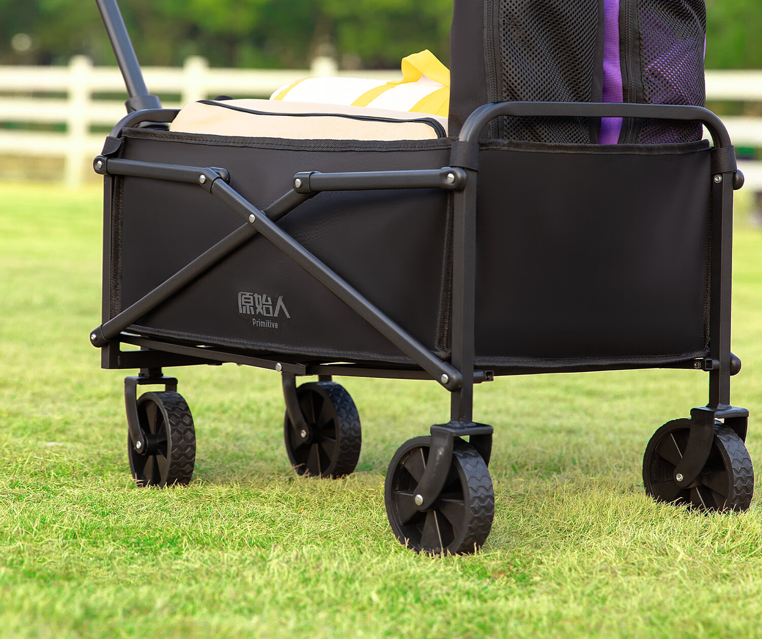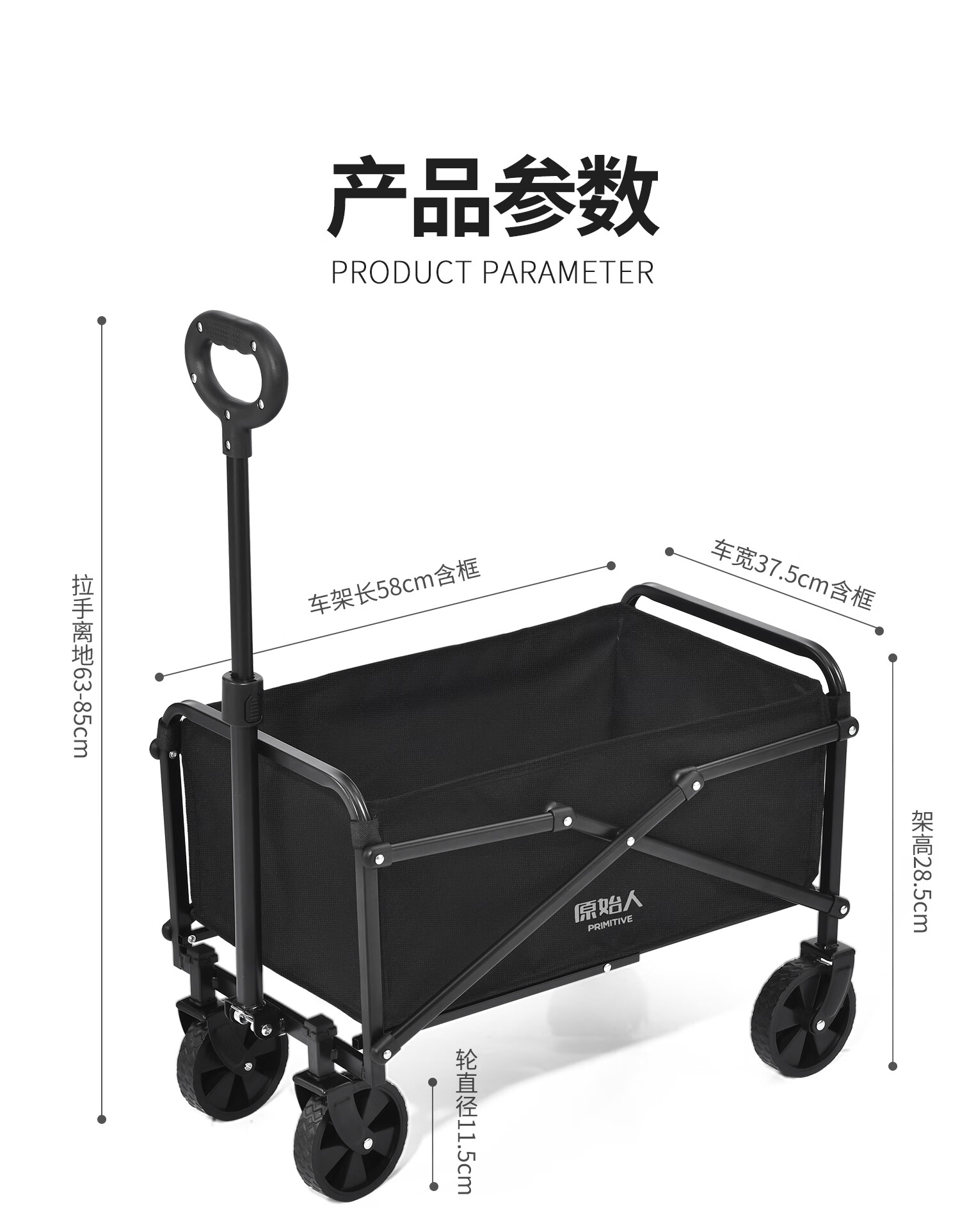 原始人露营推车营地拖车户外折叠旅行手推野餐小推车野营遛娃快递手拉车 95L 轻巧款曜黑【静音万向轮】