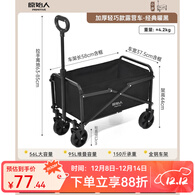 原始人露营推车可折叠户外小拖车野餐手推车收纳小拖车野营拉车儿童可躺 61L 轻巧款露营推车