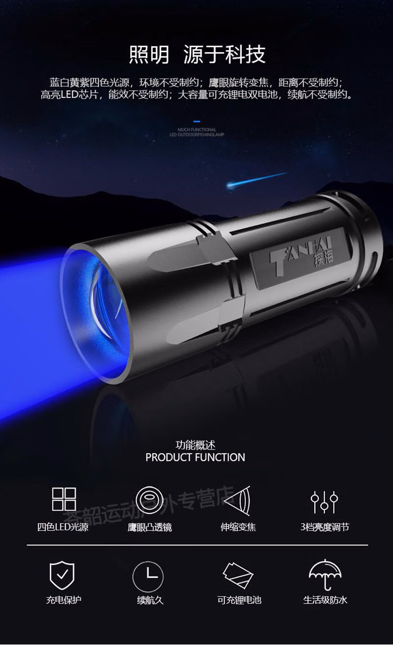 沐夜钓灯激光大炮夜钓灯激光强光钓鱼灯紫光台钓蓝光四光源垂钓鱼 四光源65时(灯) 65小时