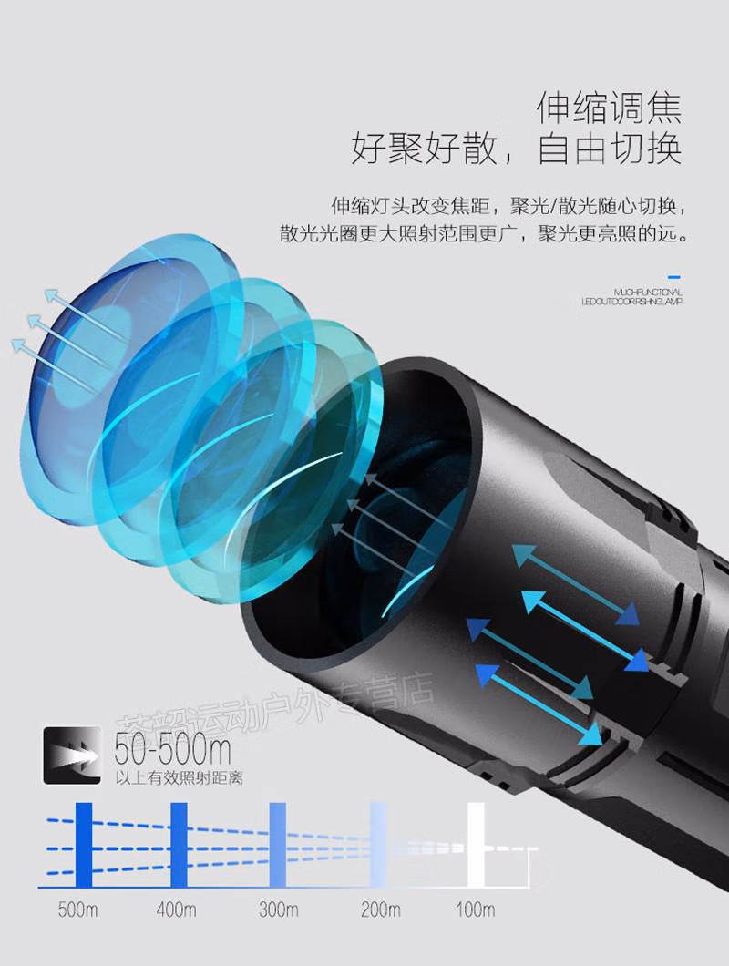 公牛适用强光手电筒可充电小型便携户外超亮远射应急耐家用LED灯 9900w普亮_伸缩变焦_智能电显_USB直充