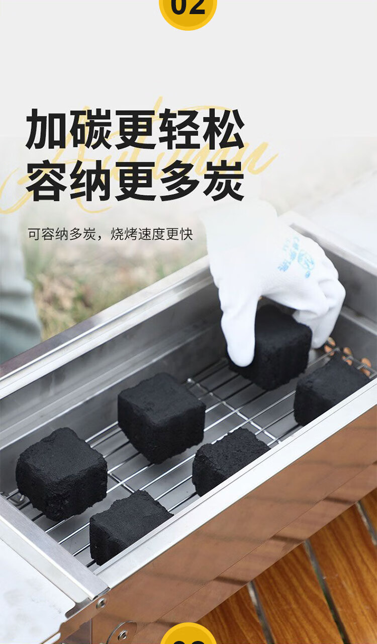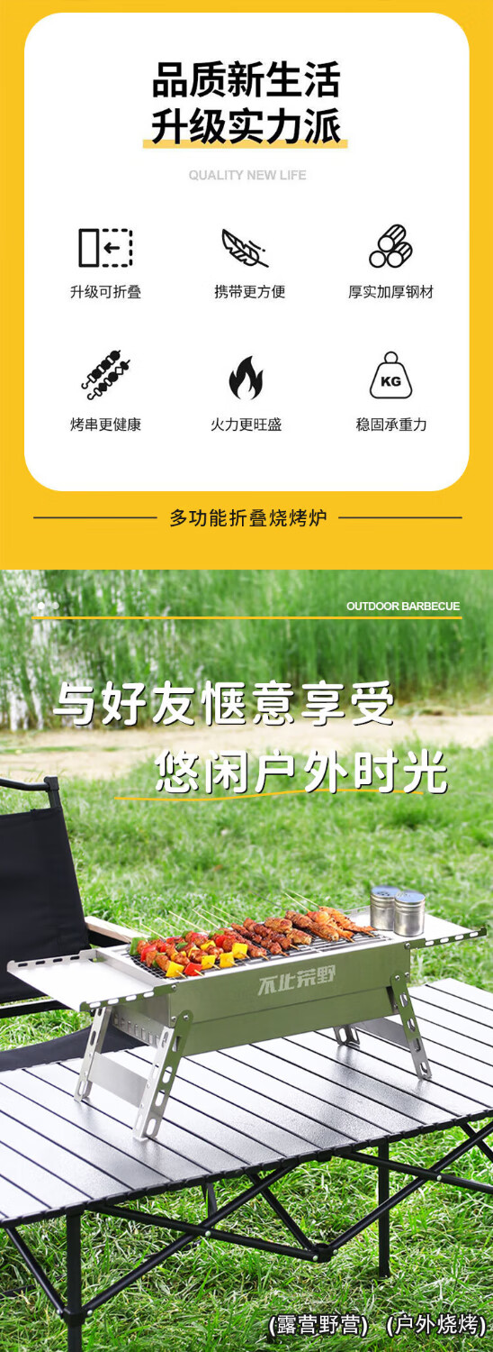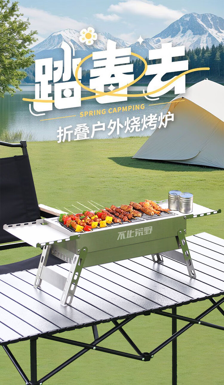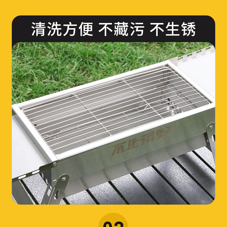 不止荒野烧烤炉烧烤架碳烤炉碳烤架不锈钢折叠便携式户外烤串烤肉露营野餐 003【分体式碳烤炉】6件套
