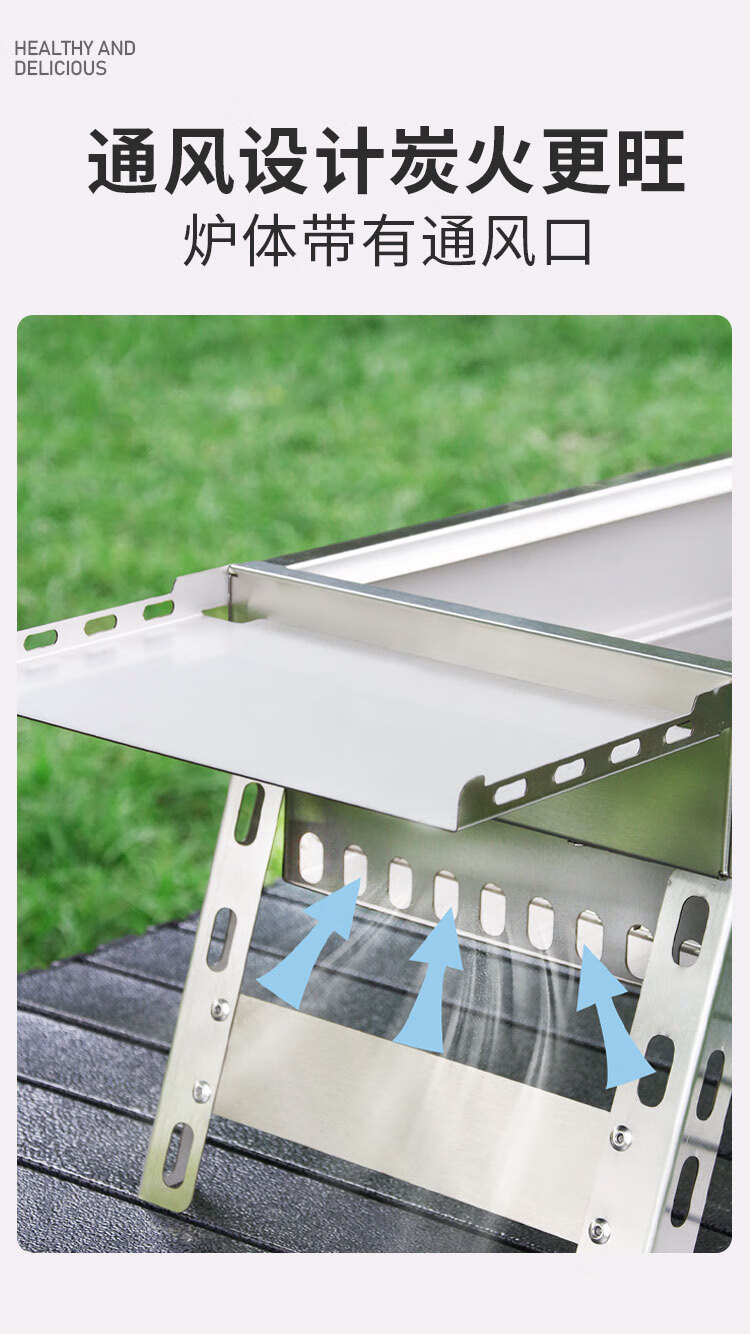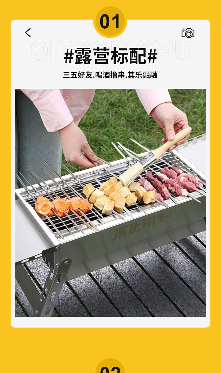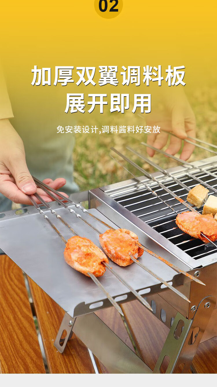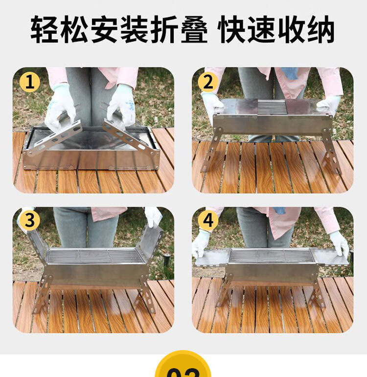 不止荒野烧烤炉烧烤架碳烤炉碳烤架不锈钢折叠便携式户外烤串烤肉露营野餐 003【分体式碳烤炉】6件套