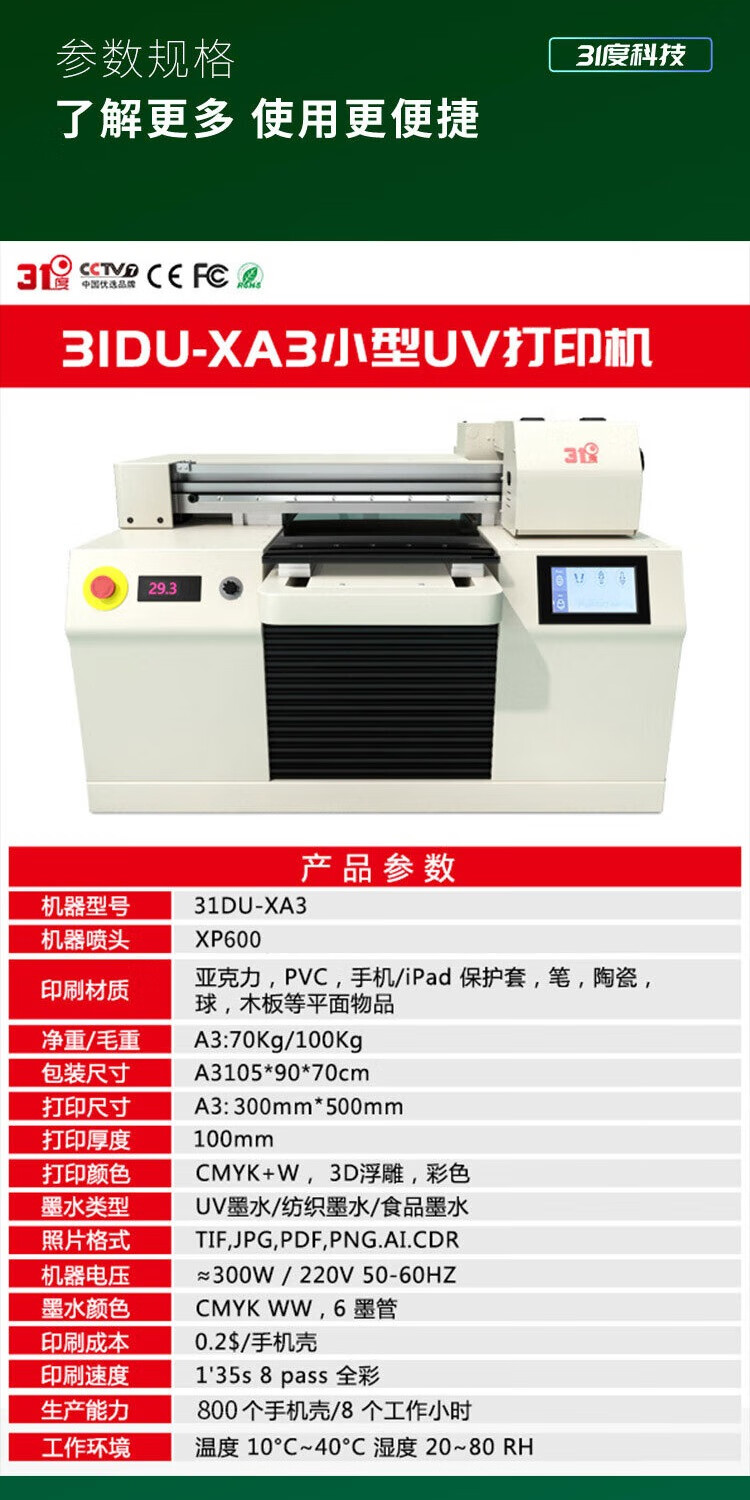 31度uv打印机 冰箱贴装饰贴水晶标文创磁吸钥匙扣纪念币金属塑料PVC亚克力kt板logo定制 小型uv打印机 官方标配 官方标配