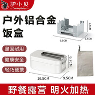 驴小贝户外铝制饭盒露营可明火加热铝合金日式野炊不锈钢餐具复古野餐盒 800ML带裙边+酒精炉+收纳袋