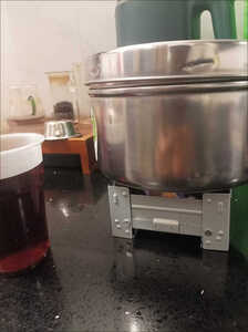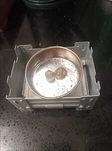 固体酒精炉配套配套使用的托盘整体来说还是不错的,在使用时稍微压扁了一点,这样可以放在炉底板使用也可以架在炉子上边缘使用。建议托盘高度减少8-10mm,收纳时就可以放入炉内了。