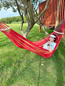 威迪瑞 吊床户外加宽加厚大学生宿舍室内寝室摇篮椅休闲帆布室内秋千吊床 红色单人-豪华款+收纳袋绑绳+加固绑带