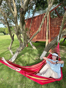 思凯乐户外吊床防侧翻双人带杆公园野营秋千专业户外露营便携吊床 红色【加厚精织帆布】承重500斤 JM