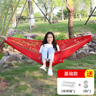悠度户外冰丝网吊床单人双人宿舍室内寝室吊床透气升级款 玫瑰红单人款+3米加粗尼龙绳2根