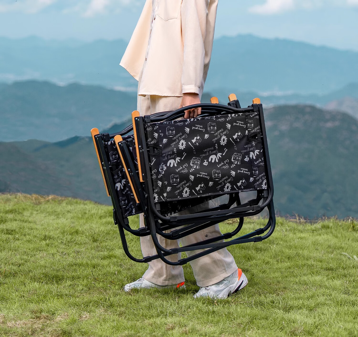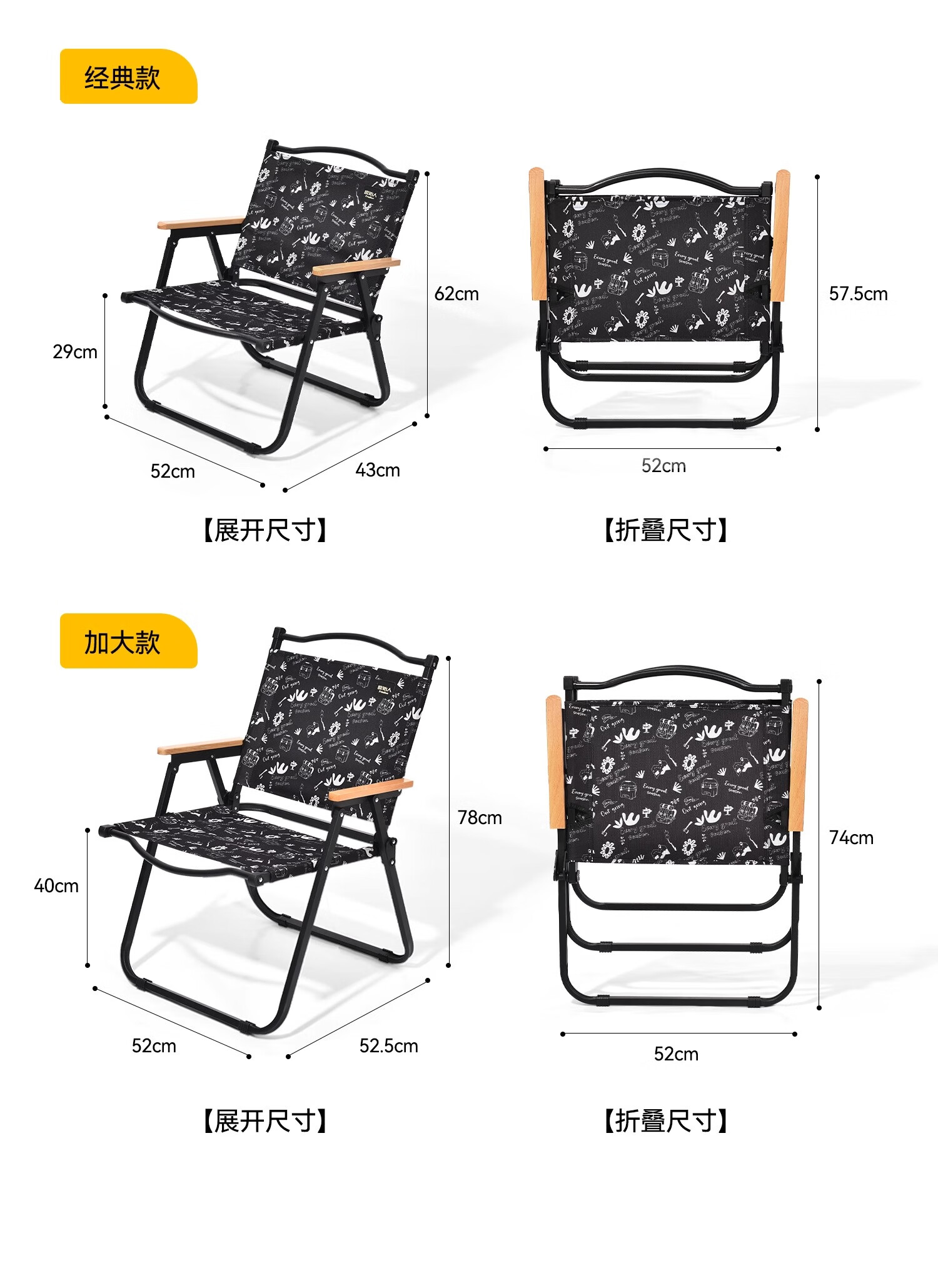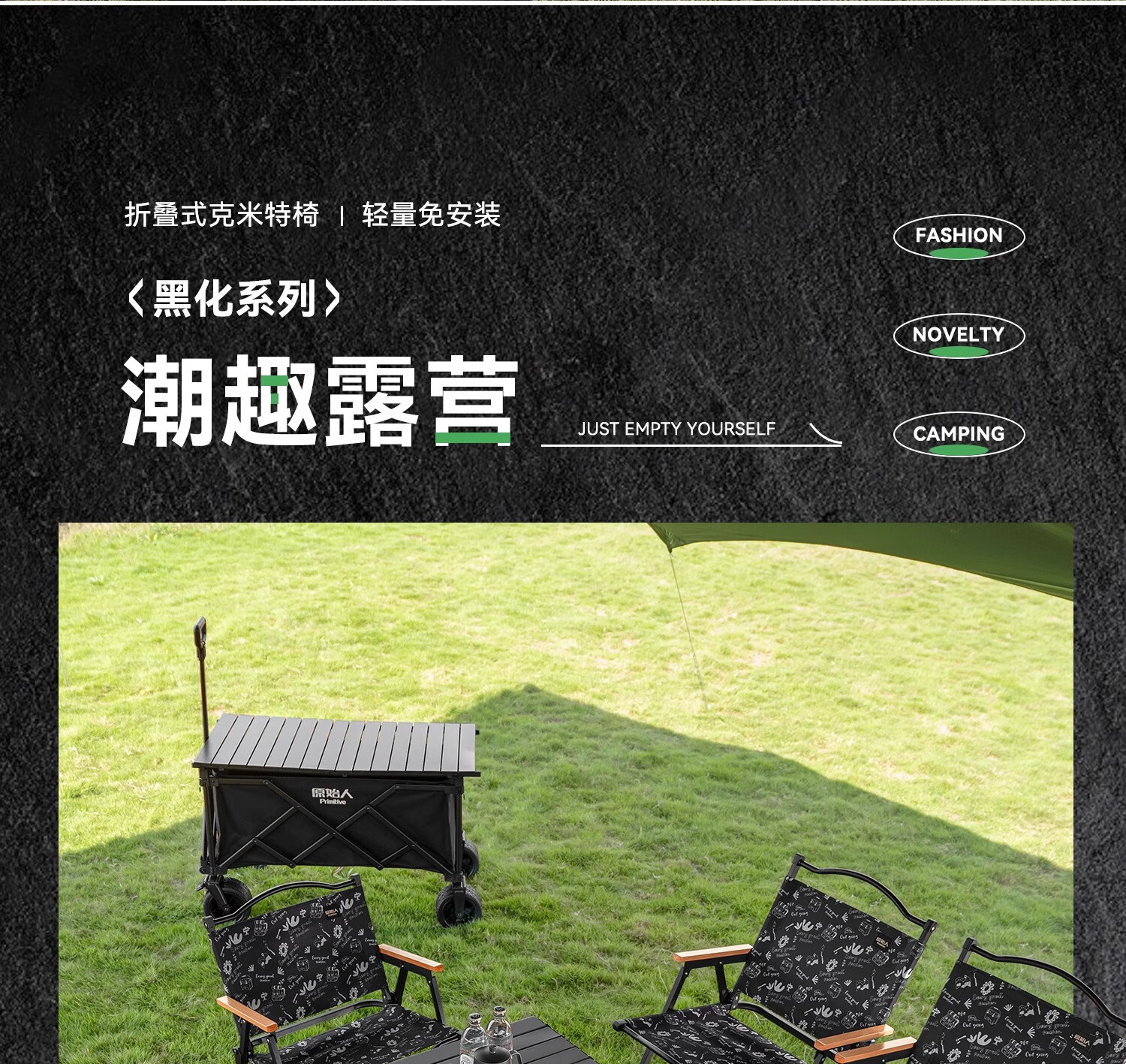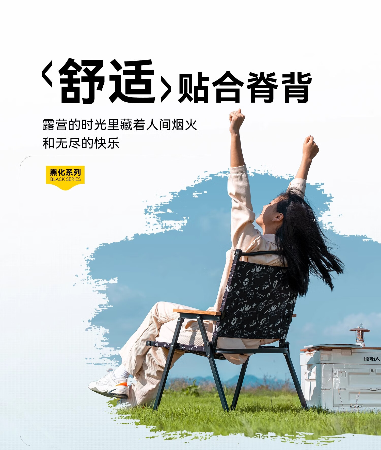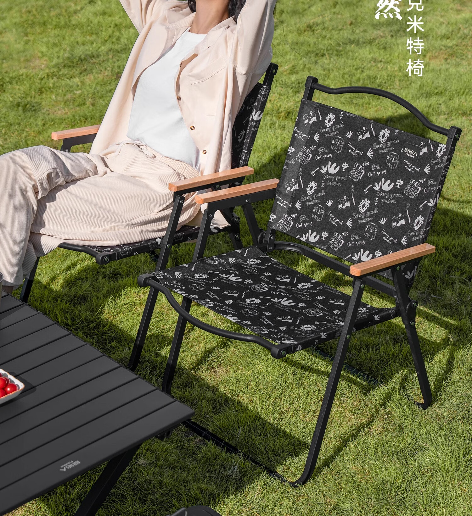原始人折叠椅户外折叠椅子克米特椅野餐椅便携桌椅沙滩椅露营椅子 经典款-黑化涂鸦