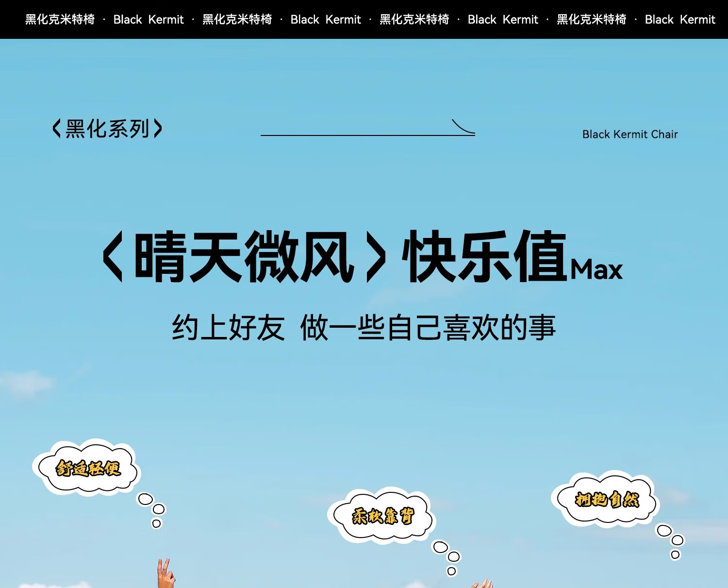 CAMELCROWN户外露营便携轻量休闲钓鱼椅子野营装备野餐克米特椅折叠椅子 【加大号】米白假日,173CAHD041