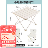 原始人 户外折叠桌铝合金便携式蛋卷桌野餐桌子露营桌椅套装野炊装备 【小号】白桌+靠背椅*2