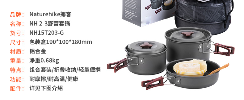 NatureHike挪客 户外野营锅具炊具便携组合套锅 2-3人 野餐烧烤用品 2-3人野营套锅