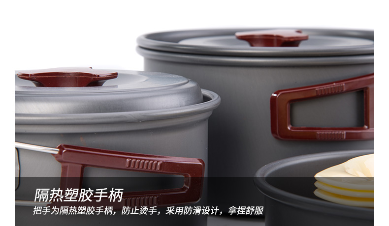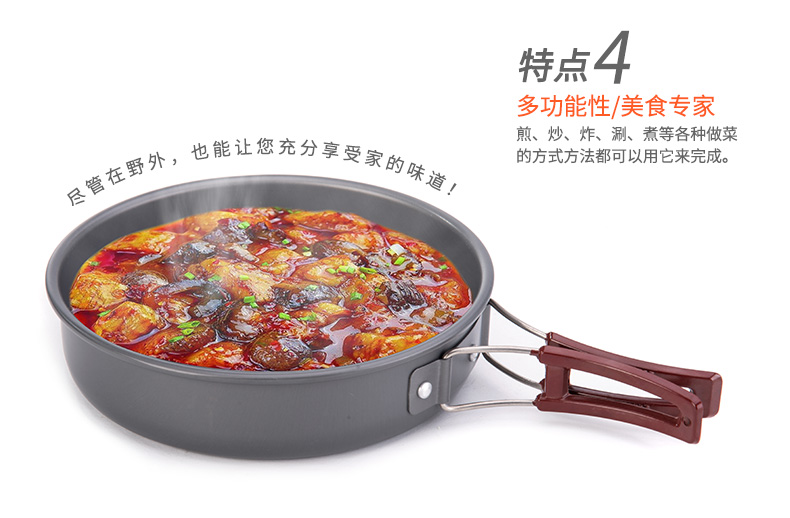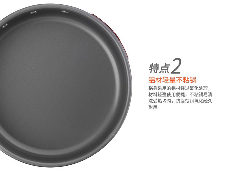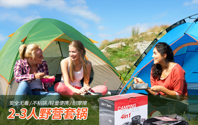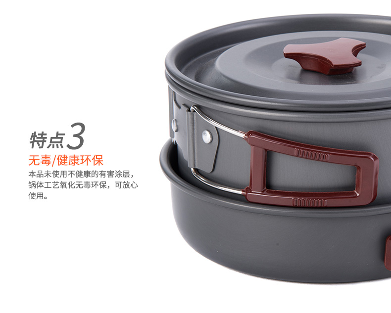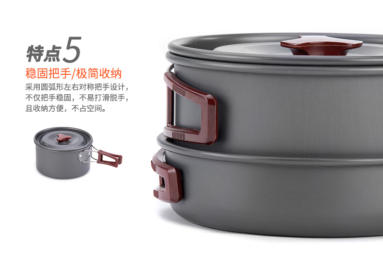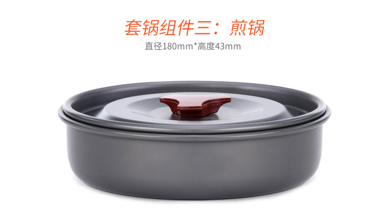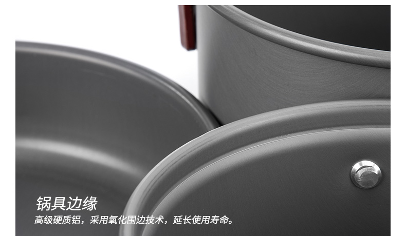 爱加芬户外不锈钢套锅露营便携自驾游烧水壶煮汤锅不粘煎盘野营锅具 木柄2+1套锅