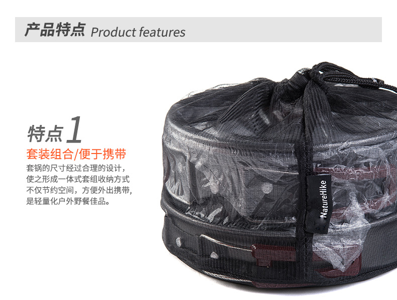 挪客Naturehike户外铝合金锅具便携露营野营套锅 水壶套锅组