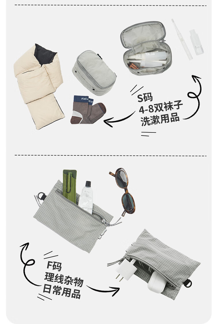 原始人露营帐篷旅行收纳袋便携式旅游衣服户外收纳包折叠收纳包分装袋 【洗漱用品收纳】浅灰-M