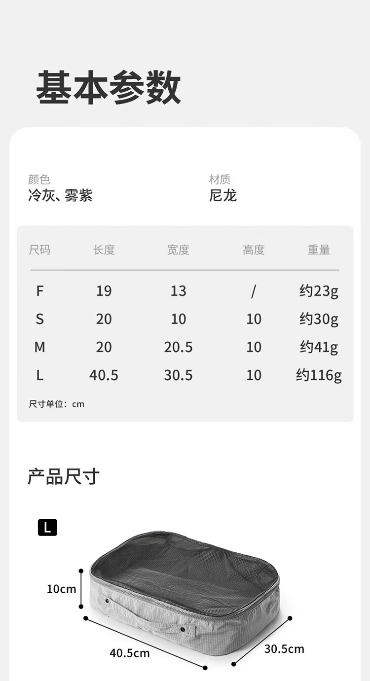 NatureHike挪客出差旅行收纳包衣物收纳袋分装袋行李箱衣服整理袋便携化妆包 雾紫/S