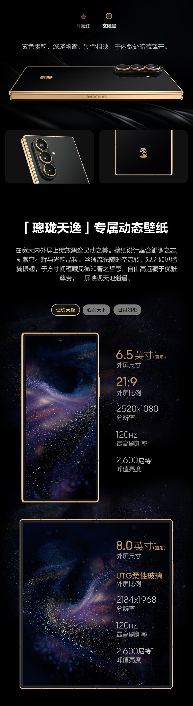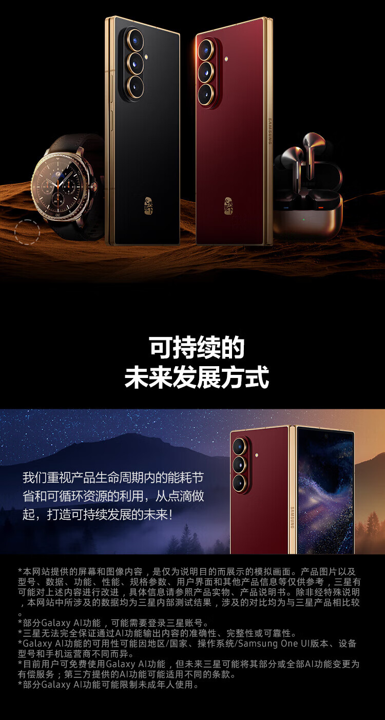 三星(SAMSUNG)三星Samsung 心系天下 W26 折叠屏手机 超轻薄超大屏 匠心工艺美学 2亿像素 AI手机 丹曦红 16GB+512GB