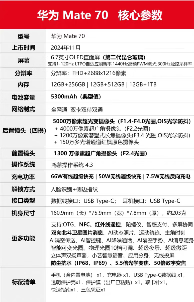 华为(HUAWEI)Mate 70